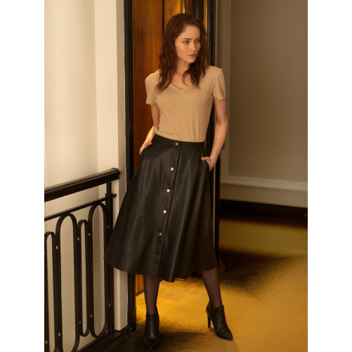 Cette jupe midi avec une coupe trapèze s'adapte à toutes les morphologies pour vous mettre en valeur.