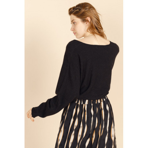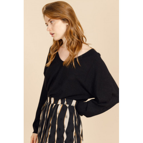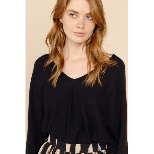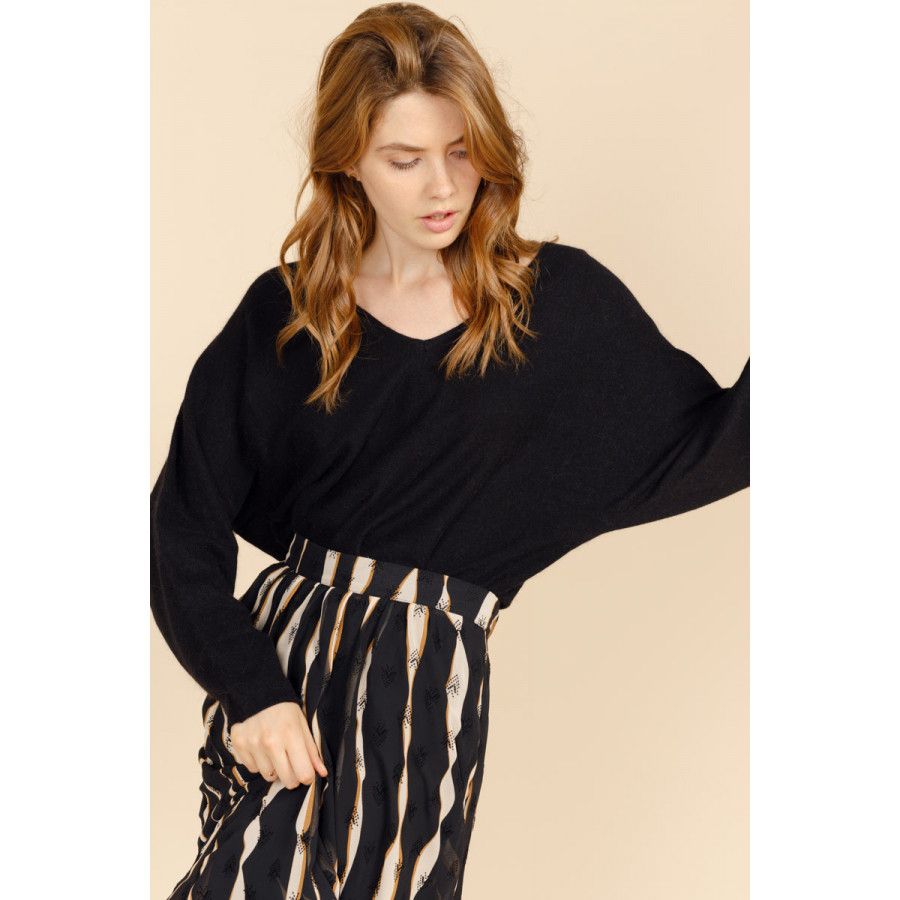 Ce pull au col V se mêle à une coupe ample et se décline en plusieurs coloris, pour mieux s'adapter à tous les contextes.