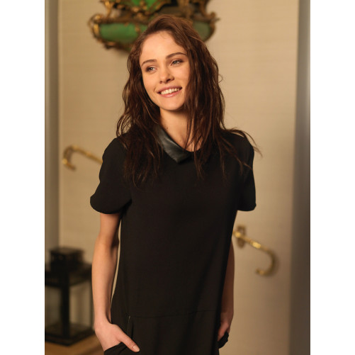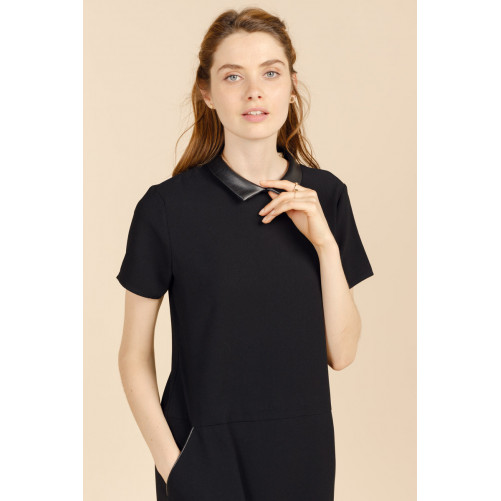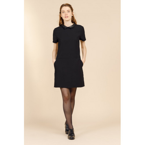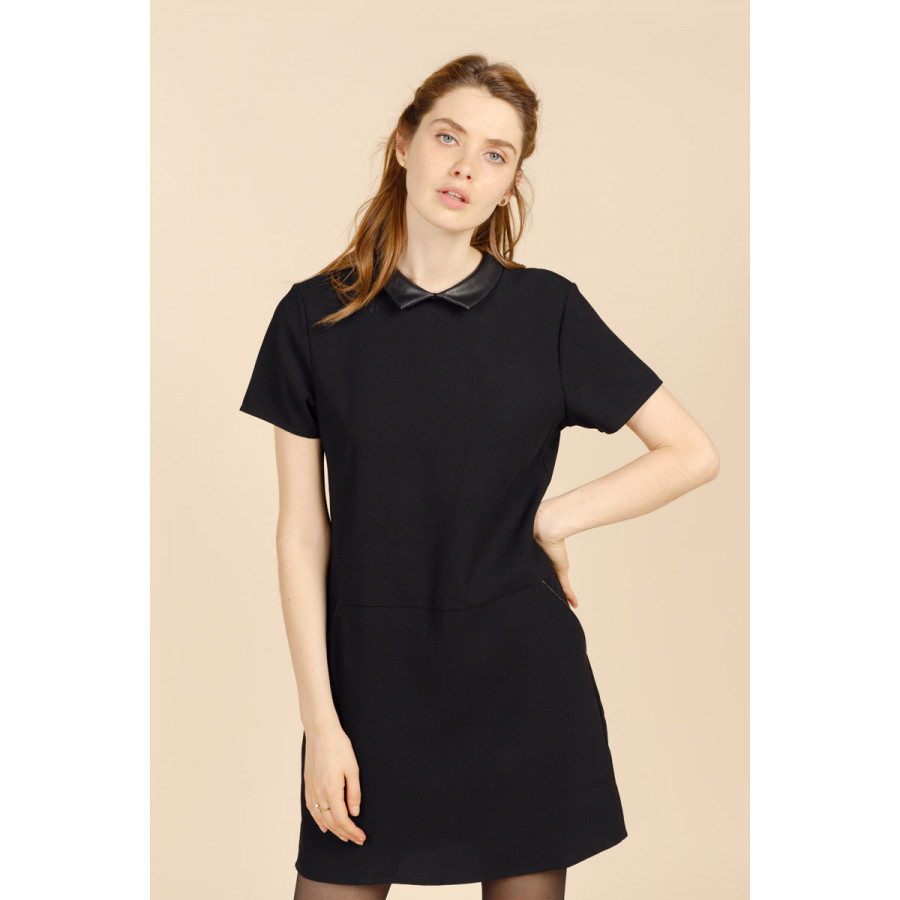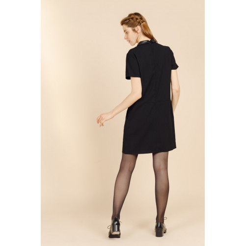 Tout en sobriété élégante, la robe FARAH séduit par ses détails ultra-soignés : un petit col chemise rehaussé d'un effet cuir.