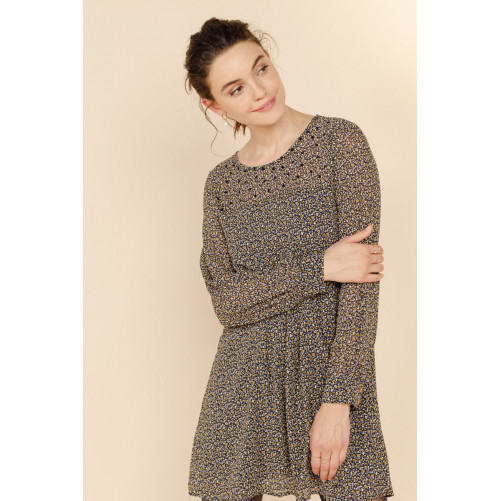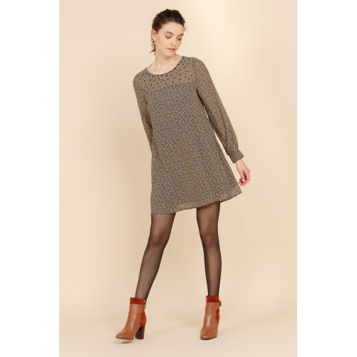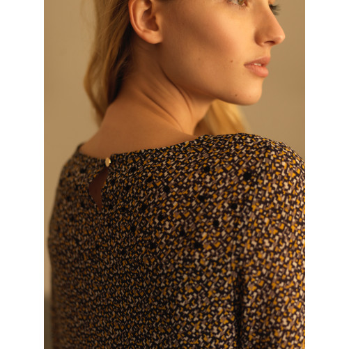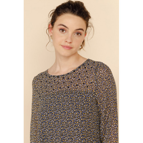 Le col rond et les manches semi-transparentes confèrent un supplément de féminité au vêtement.