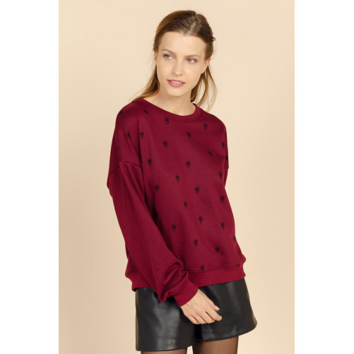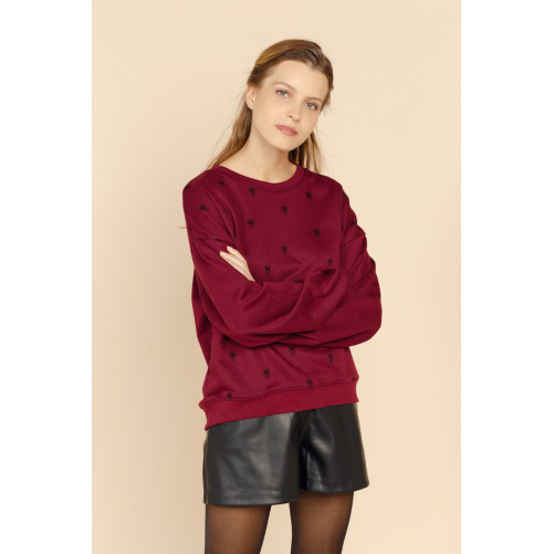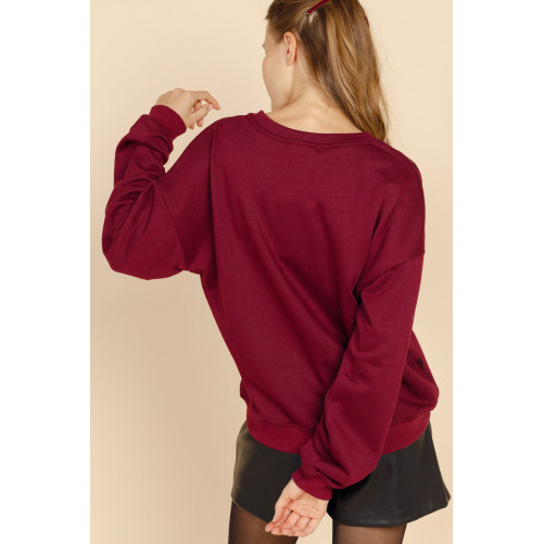 Le sweat ALEJANDRA se pare de manches chauve-souris et d'un col rond devant.