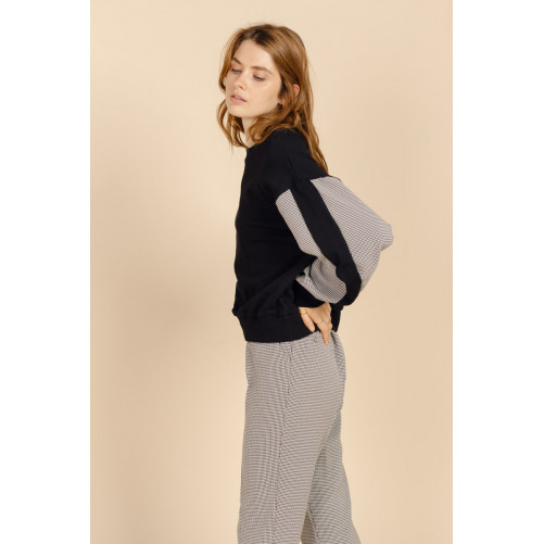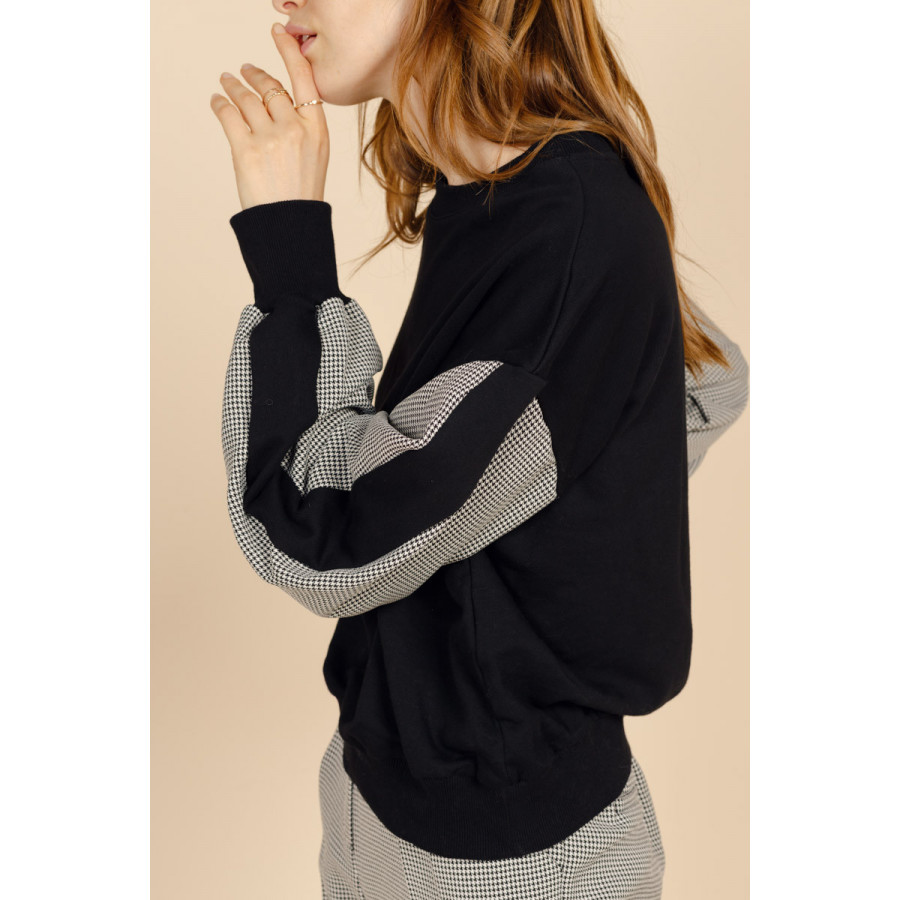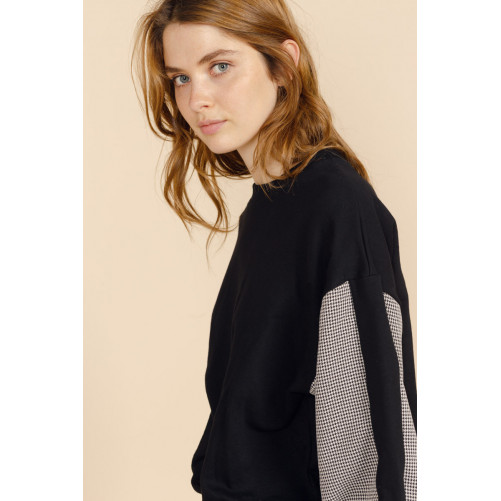 Un sweat tendance et original. Paré d'un motif pied de poule, c'est la pièce mode de la saison.